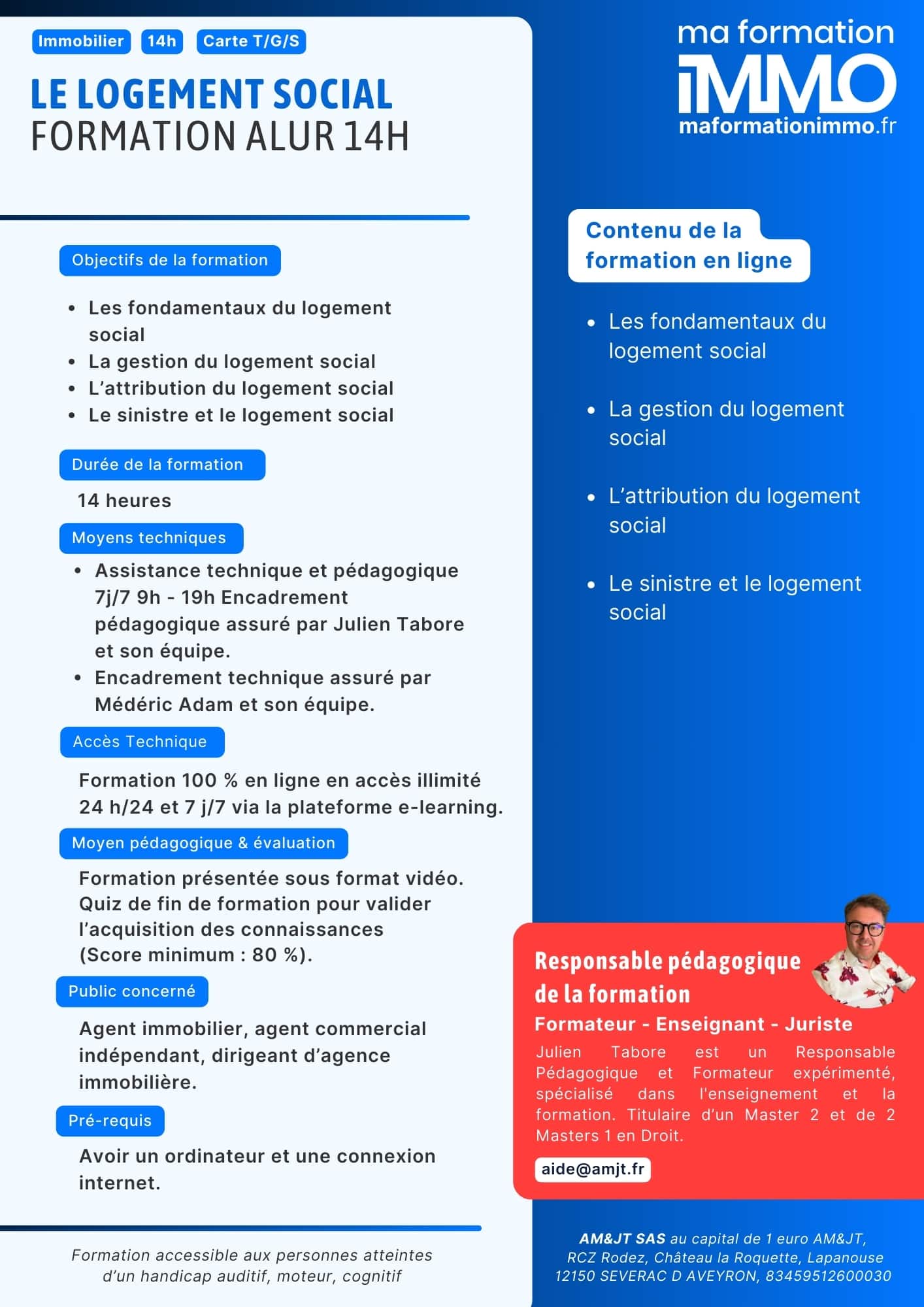 Votre tuteur pédagogique Le logement social de A à Z : Julien TABORE (master en droit privé – administration des affaires – droit international et européen et formateur senior).